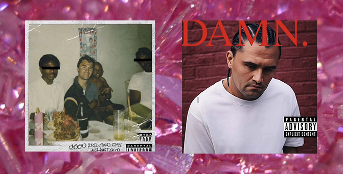 Kirkified Kendrick Lamar albums, Good Kid, mAAd City (2012) at left, DAMN. (2017) at right.