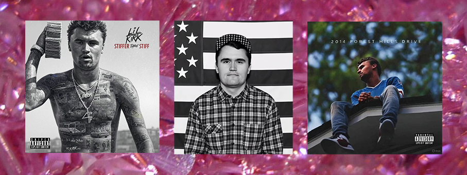 From left to right, “Kirkified” Lil Baby album Harder Than Hard (2017) , A$AP Rocky album Live. Love. ASAP. (2011), and J. Cole album 2014 Forest Hills Drive (2014). In all three instances, Kirk replaces a Black artist.