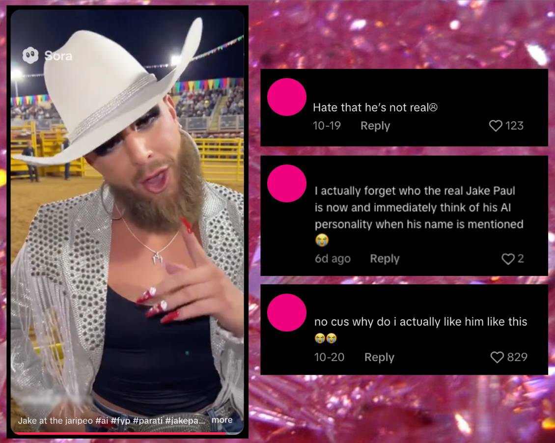 For what it’s worth, in response to the onslaught of AI Jake Paul slop, IRL Jake Paul posted a TikTok of his own where he sarcastically claimed to be pursuing lawsuits against those who have used his likeness in unsavory ways. While doing so, however, he purposefully invokes many of these videos by applying makeup during his diatribe — so maybe he’s learned a thing or two from his queer AI counterpart after all.